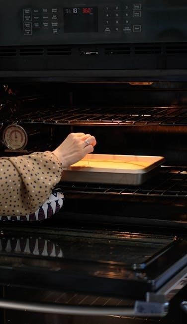 Detailed Cleaning: Remove oven racks and wash them separately with warm, soapy water․ For baked-on residue, apply a commercial oven cleaner following the manufacturer’s instructions carefully, ensuring adequate ventilation․