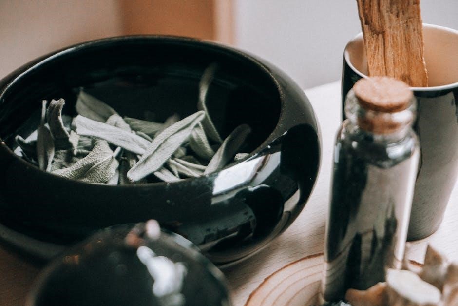 The PDF emphasizes a holistic approach, linking planetary correspondences (Moon for emotional healing) and elemental associations (Water for emotional flow) to enhance therapeutic effects. It cautions against self-treating serious conditions and encourages responsible herbalism. Cunningham’s work stresses intention and visualization alongside herbal remedies, fostering a mind-body connection for optimal wellness.